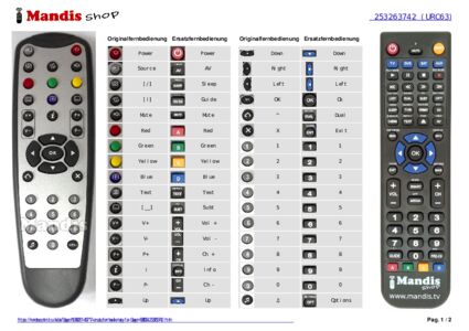 Im Folgenden zeigen wir Ihnen die Zuordnung jedes einzelnen Knopfes der Originalfernbedienung zu der Taste, die dieselbe Funktion auf der Ersatzfernbedienung ausführt. In einigen Fällen müssen Sie möglicherweise die UMSCHALT-Taste drücken, bevor Sie eine andere Taste drücken, um bestimmte Aktionen auszuführen. Diese zusätzlichen Funktionen werden oft wenig genutzt und dienen dazu, das Verständnis der Ersatzfernbedienung zu erleichtern oder weil die Originalfernbedienung mehr Tasten hat als das entsprechende Modell.