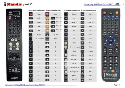 Im Folgenden zeigen wir Ihnen die Zuordnung jedes einzelnen Knopfes der Originalfernbedienung zu der Taste, die dieselbe Funktion auf der Ersatzfernbedienung ausführt. In einigen Fällen müssen Sie möglicherweise die UMSCHALT-Taste drücken, bevor Sie eine andere Taste drücken, um bestimmte Aktionen auszuführen. Diese zusätzlichen Funktionen werden oft wenig genutzt und dienen dazu, das Verständnis der Ersatzfernbedienung zu erleichtern oder weil die Originalfernbedienung mehr Tasten hat als das entsprechende Modell.
