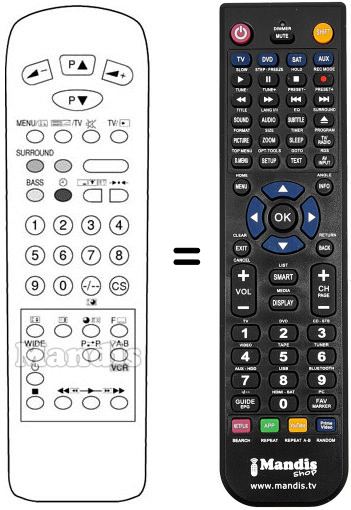 Fernbedienung, die das Original und die Gesamtheit seiner Funktionen, vollständig ersetzt. Es handelt sich jedoch nicht um eine Universalfernbedienung sondern um eine Fernbedienung die das Original ersetzt. Sie erhalten eine nach Einlegen der Batterien sofort einsatzbereite Fernbedienung. Jegliches Programmieren entfällt. Wir geben umfassende Garantie dafür, dass diese Fernbedienung alle Funktionen der Originalfernbedienung erfüllt.