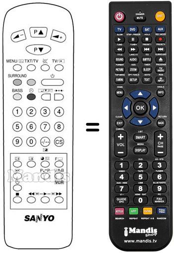 Fernbedienung, die das Original und die Gesamtheit seiner Funktionen, vollständig ersetzt. Es handelt sich jedoch nicht um eine Universalfernbedienung sondern um eine Fernbedienung die das Original ersetzt. Sie erhalten eine nach Einlegen der Batterien sofort einsatzbereite Fernbedienung. Jegliches Programmieren entfällt. Wir geben umfassende Garantie dafür, dass diese Fernbedienung alle Funktionen der Originalfernbedienung erfüllt.