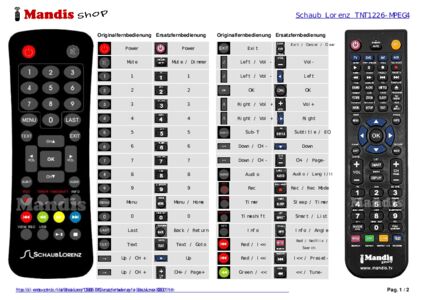 Diese Fernbedienung ersetzt Ihre TNT755MPEG4 in vollem Umfang und bietet alle Funktionen des Originals.