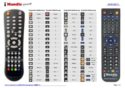 Ein Dokument ist enthalten, um die Verwendung der neuen Fernbedienung zu erleichtern, indem es die Tastenbelegung zeigt.