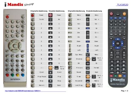 Ein Dokument ist enthalten, um die Verwendung der neuen Fernbedienung zu erleichtern, indem es die Tastenbelegung zeigt.