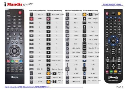 Ein Dokument ist enthalten, um die Verwendung der neuen Fernbedienung zu erleichtern, indem es die Tastenbelegung zeigt.