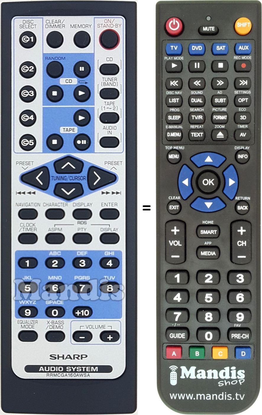 Ersatzfernbedienung für Audio System (RRMCGA160AWSA)