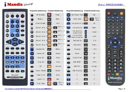 Diese Fernbedienung ersetzt Ihre Audio System (RRMCGA160AWSA) in vollem Umfang und bietet alle Funktionen des Originals.