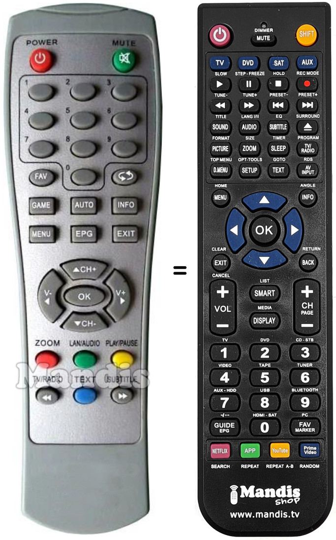 Es handelt sich jedoch nicht um eine Universalfernbedienung sondern um eine Fernbedienung die das Original ersetzt.