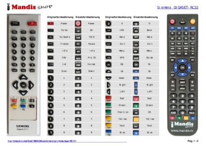 Home > Marken > Fernbedienungen Siemens > Fernbedienung für Siemens GIGASET-RC32