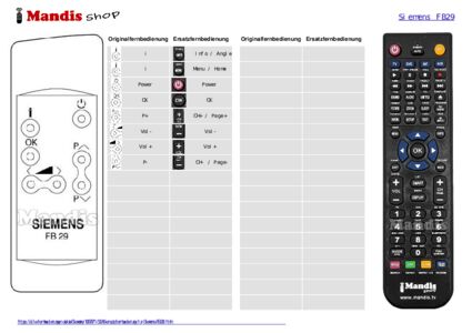 Home > Marken > Fernbedienungen Siemens > Fernbedienung für Siemens FB 29