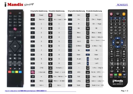 Diese Fernbedienung ersetzt Ihre RCA48105 (30092064) in vollem Umfang und bietet alle Funktionen des Originals.