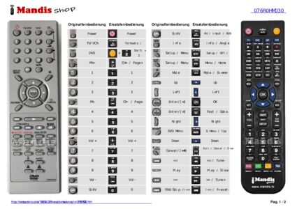 Ein Dokument ist enthalten, um die Verwendung der neuen Fernbedienung zu erleichtern, indem es die Tastenbelegung zeigt.