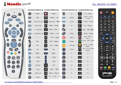 Ein Dokument ist enthalten, um die Verwendung der neuen Fernbedienung zu erleichtern, indem es die Tastenbelegung zeigt.