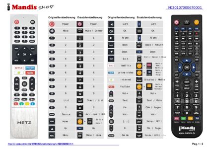 Diese Fernbedienung ersetzt Ihre N030107000670001 in vollem Umfang und bietet alle Funktionen des Originals.