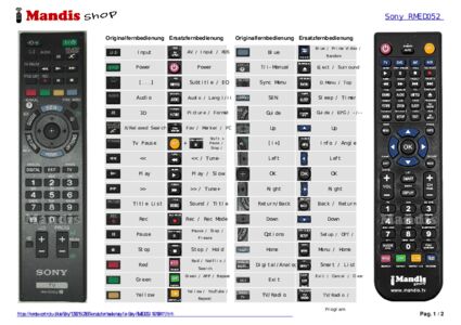 Diese Fernbedienung erfüllt alle Funktionen der Originalfernbedienung: Power, Source, Subtitle, Audio, 3D, Related Search, TV Pause, <<, Play, >>, Title List, Rec, Pause, Stop, Red, Green, Yellow, Blue, ? / i-Manual, Sync Menu, Guide, Sen, i+ / [?], Up, Right, Down, Left, OK, Return / Back, Home, Options, Digital / Analog, Exit, TV / Radio, 1, 2, 3, 4, 5, 6, 7, 8, 9, 0, Size, Text, Mute, Vol +, Vol -, Prog +, Prog -, Media