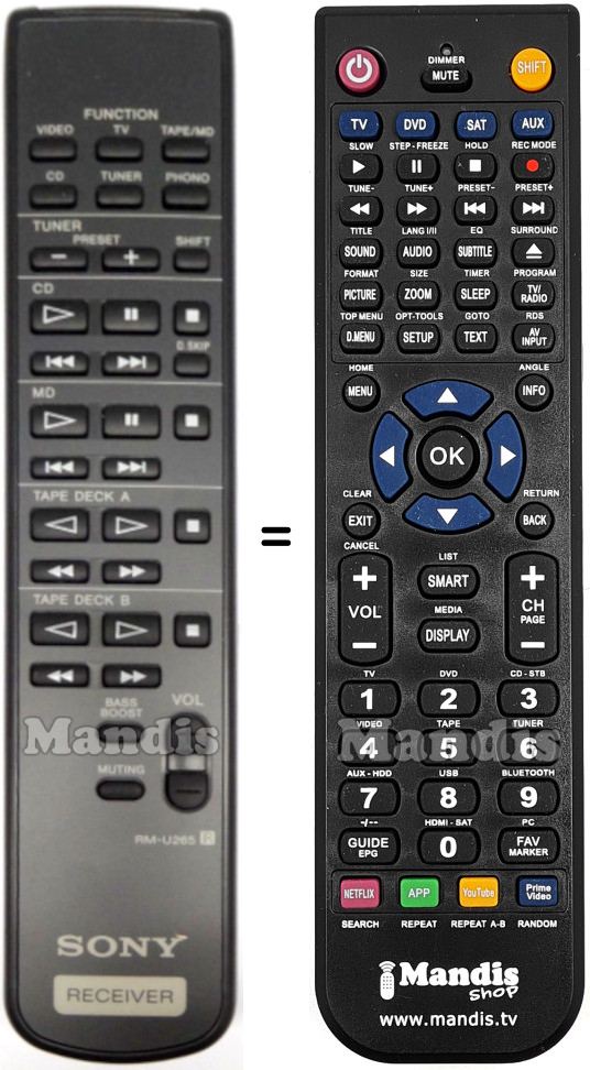 Diese Fernbedienung ersetzt Ihre RM-U265 (147363311) in vollem Umfang und bietet alle Funktionen des Originals.