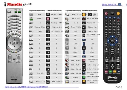Diese Fernbedienung ersetzt Ihre RM-972 (147763811) in vollem Umfang und bietet alle Funktionen des Originals.