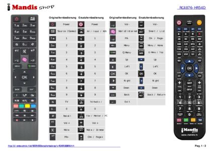 Ein Dokument ist enthalten, um die Verwendung der neuen Fernbedienung zu erleichtern, indem es die Tastenbelegung zeigt.