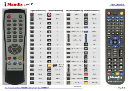 Diese Fernbedienung ersetzt Ihre REMCON1489 in vollem Umfang und bietet alle Funktionen des Originals.