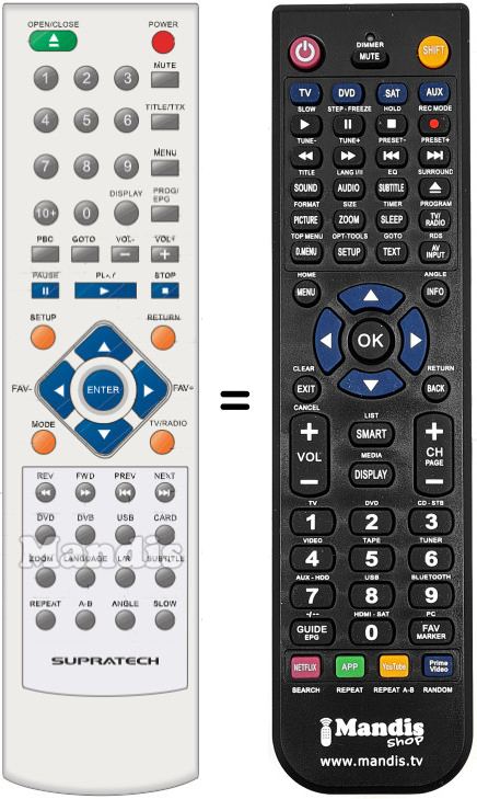 Es handelt sich jedoch nicht um eine Universalfernbedienung sondern um eine Fernbedienung die das Original ersetzt.