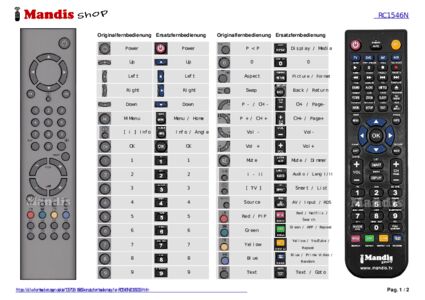 Ein Dokument ist enthalten, um die Verwendung der neuen Fernbedienung zu erleichtern, indem es die Tastenbelegung zeigt.