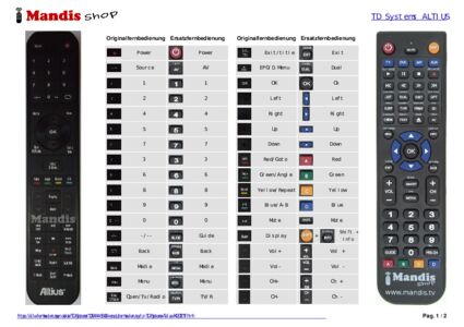 Diese Fernbedienung ersetzt Ihre Altius (K42DLT1F) in vollem Umfang und bietet alle Funktionen des Originals.