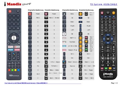Home > Marken > Fernbedienungen TD Systems > Fernbedienung für TD Systems K32DLC16GLE