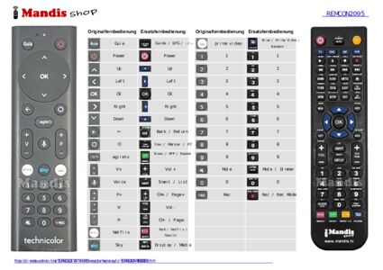 Diese Fernbedienung ersetzt Ihre REMCON2095 in vollem Umfang und bietet alle Funktionen des Originals.