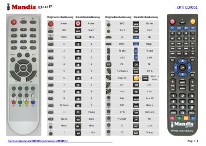 Ein Dokument ist enthalten, um die Verwendung der neuen Fernbedienung zu erleichtern, indem es die Tastenbelegung zeigt.