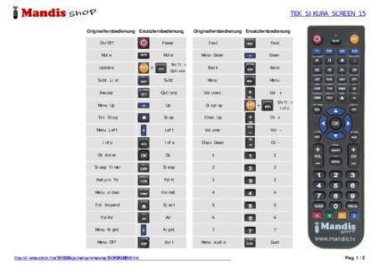 Ein Dokument ist enthalten, um die Verwendung der neuen Fernbedienung zu erleichtern, indem es die Tastenbelegung zeigt.