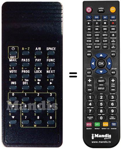 Fernbedienung, die das Original und die Gesamtheit seiner Funktionen, vollständig ersetzt. Es handelt sich jedoch nicht um eine Universalfernbedienung sondern um eine Fernbedienung die das Original ersetzt. Sie erhalten eine nach Einlegen der Batterien sofort einsatzbereite Fernbedienung. Jegliches Programmieren entfällt. Wir geben umfassende Garantie dafür, dass diese Fernbedienung alle Funktionen der Originalfernbedienung erfüllt.