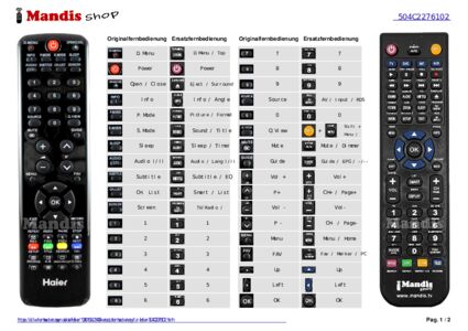 Ein Dokument ist enthalten, um die Verwendung der neuen Fernbedienung zu erleichtern, indem es die Tastenbelegung zeigt.