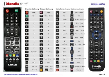 Ein Dokument ist enthalten, um die Verwendung der neuen Fernbedienung zu erleichtern, indem es die Tastenbelegung zeigt.