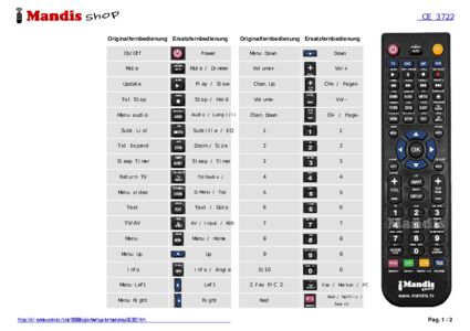 Ein Dokument ist enthalten, um die Verwendung der neuen Fernbedienung zu erleichtern, indem es die Tastenbelegung zeigt.