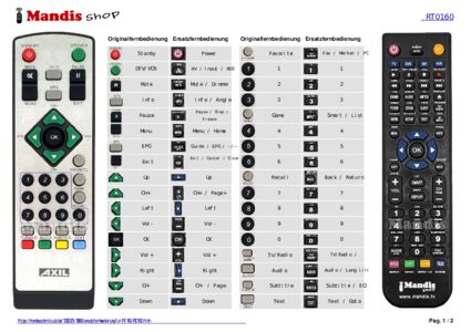 Ein Dokument ist enthalten, um die Verwendung der neuen Fernbedienung zu erleichtern, indem es die Tastenbelegung zeigt.