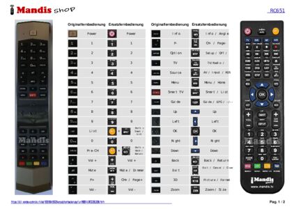 Ein Dokument ist enthalten, um die Verwendung der neuen Fernbedienung zu erleichtern, indem es die Tastenbelegung zeigt.