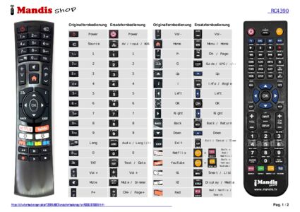 Diese Fernbedienung ersetzt Ihre RC4390 (30100824) in vollem Umfang und bietet alle Funktionen des Originals.