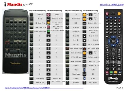 Diese Fernbedienung ersetzt Ihre RAK-SC310W in vollem Umfang und bietet alle Funktionen des Originals.