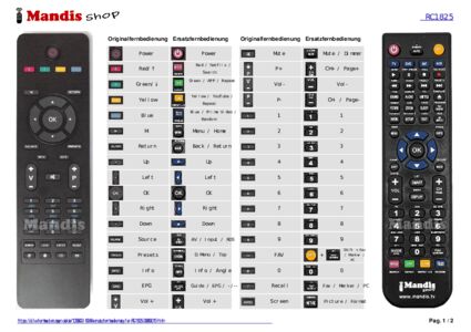 Ein Dokument ist enthalten, um die Verwendung der neuen Fernbedienung zu erleichtern, indem es die Tastenbelegung zeigt.