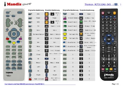 Diese Fernbedienung ersetzt Ihre RCT 311 DA2 in vollem Umfang und bietet alle Funktionen des Originals.