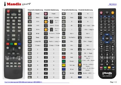 Diese Fernbedienung ersetzt Ihre RC2910 (30070063) in vollem Umfang und bietet alle Funktionen des Originals.