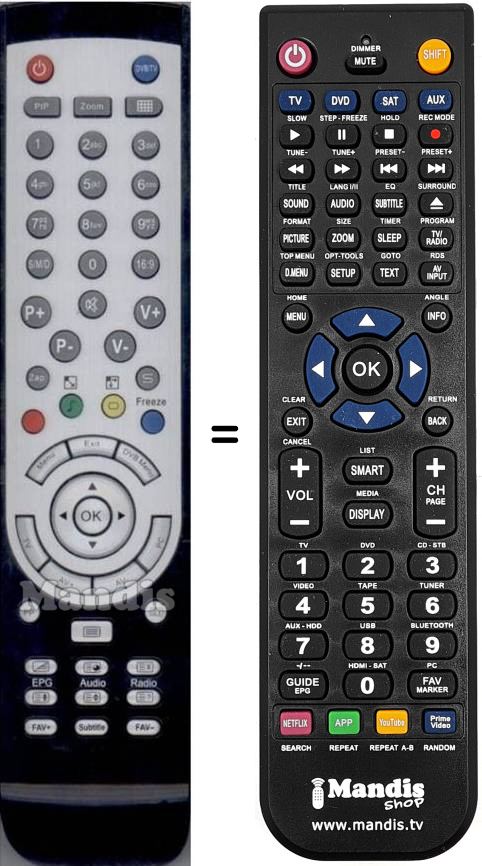 Es handelt sich jedoch nicht um eine Universalfernbedienung sondern um eine Fernbedienung die das Original ersetzt.