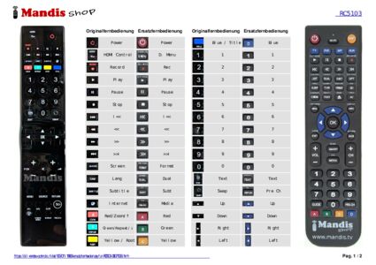 Diese Fernbedienung ersetzt Ihre RC5103 in vollem Umfang und bietet alle Funktionen des Originals.