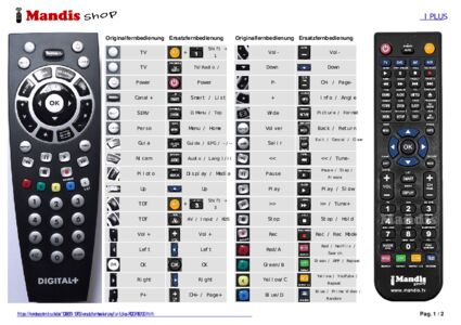 Ein Dokument ist enthalten, um die Verwendung der neuen Fernbedienung zu erleichtern, indem es die Tastenbelegung zeigt.