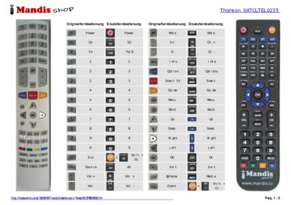 Ein Dokument ist enthalten, um die Verwendung der neuen Fernbedienung zu erleichtern, indem es die Tastenbelegung zeigt.