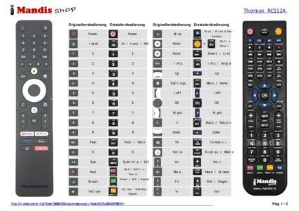 Ein Dokument ist enthalten, um die Verwendung der neuen Fernbedienung zu erleichtern, indem es die Tastenbelegung zeigt.