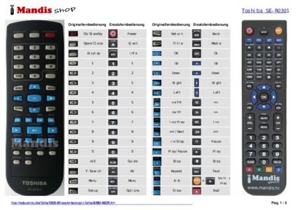 Home > Marken > Fernbedienungen Toshiba > Fernbedienung für Toshiba SE-R0301
