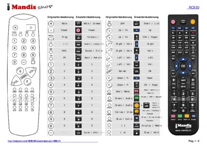 Ein Dokument ist enthalten, um die Verwendung der neuen Fernbedienung zu erleichtern, indem es die Tastenbelegung zeigt.