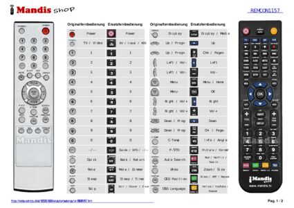 Ein Dokument ist enthalten, um die Verwendung der neuen Fernbedienung zu erleichtern, indem es die Tastenbelegung zeigt.