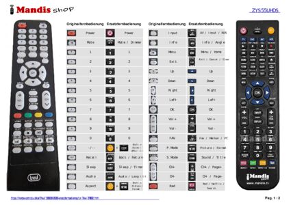 Ein Dokument ist enthalten, um die Verwendung der neuen Fernbedienung zu erleichtern, indem es die Tastenbelegung zeigt.