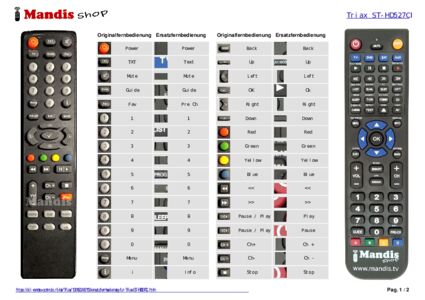 Diese Fernbedienung ersetzt Ihre ST-HD527CI in vollem Umfang und bietet alle Funktionen des Originals.